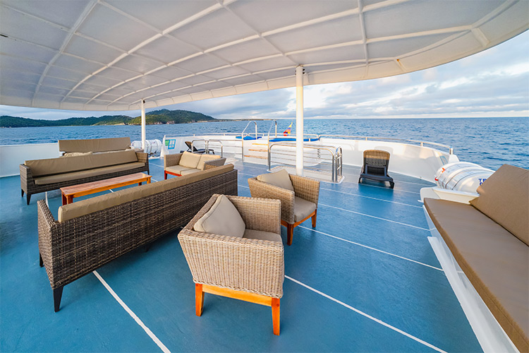 An eclectically styled yacht, the Treasure of the Galapagos fuses subtle art deco elements with contemporary ones. This yacht has a host of facilities to be enjoyed in relaxed and luxurious surroundings. The yacht accommodates 16 passengers, offering a suite with two balconies and eight double outside cabins each with a balcony. All rooms have a private bathroom, hot water, air-conditioning, vanity dressers and security boxes.