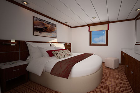 The Celebrity Xperience (formerly known as the Galapagos Eclipse) offers all the amenities and services of other luxury cruise ships in the Galapagos with only a fraction of the number of passengers. She is extremely spacious for 48 passengers and boasts an English-speaking naturalist for every 12 passengers. On-board amenities include a Jacuzzi, an observation deck, al fresco dining area, entertainment center, library, lounge and a gift shop. Celebrity Xperience offers four cabin categories, all stylishly decorated and equipped with private facilities, air conditioning, and ocean-view windows or portholes. Two Staterooms on each cabin deck have interconnecting doors to accommodate families.