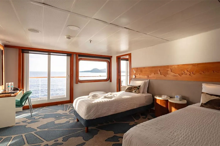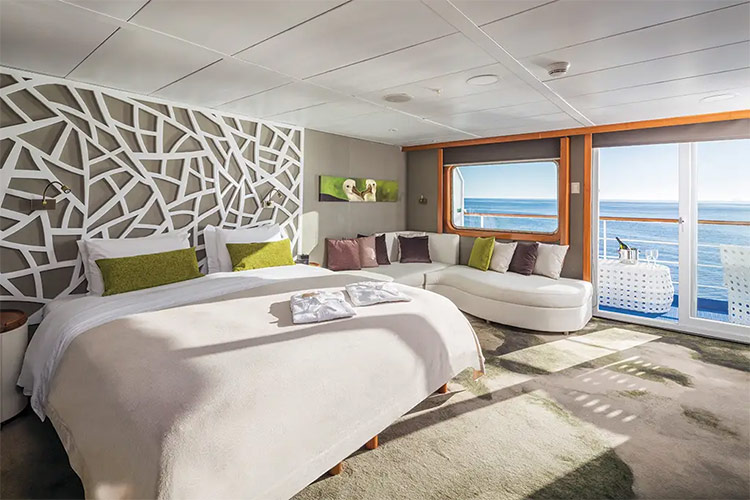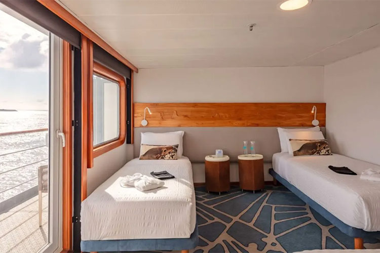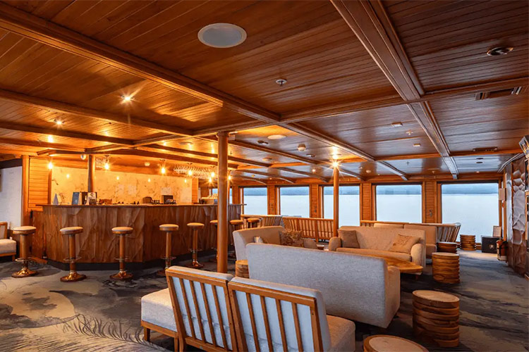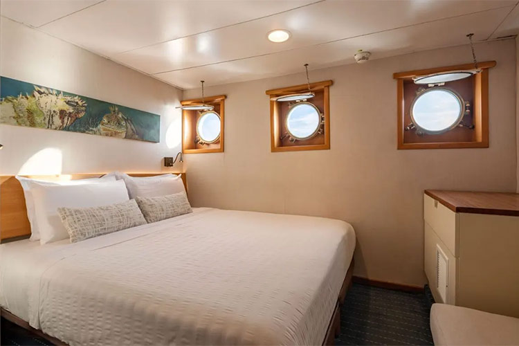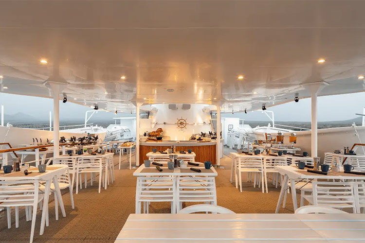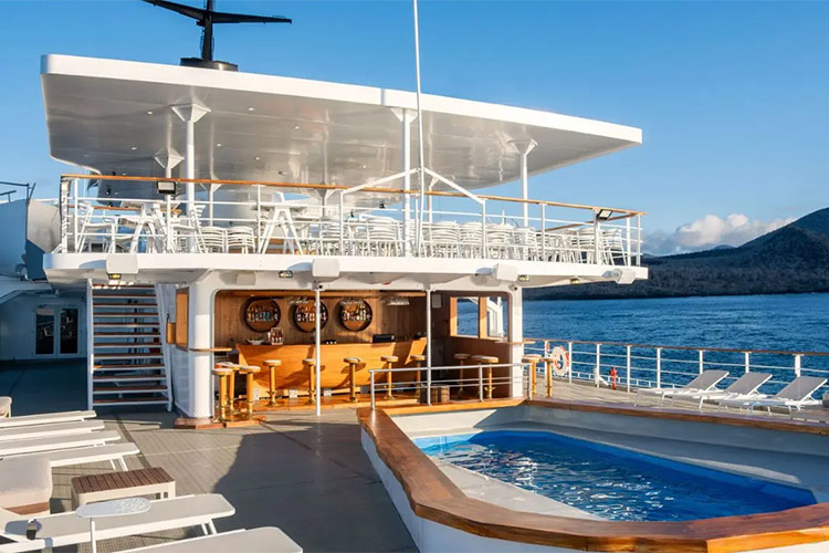 This legendary, one hundred-passenger, Luxury vessel offers all the amenities of a large cruise liner without sacrificing the intimacy you'd expect on a small sailing craft. The luxurious Legend is equipped with five decks, a swimming pool, and a library. She also has exercise equipment, international phone/fax/Internet, 24-hour/pay medical service, the most technologically advanced safety system in the archipelago, and much more. Enjoy the wonders of the Galapagos while being catered to by our talented staff.