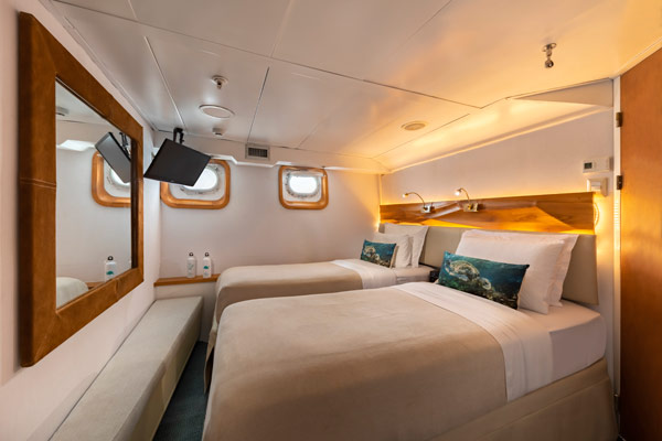 The sister ships Coral I and Coral II are the perfect combination of classic beauty and exquisite style. Built in Germany and Holland respectively, each ship surpasses all the standards you would expect from a high-class yacht in order to make your cruise among the enchanted islands extraordinary. Every cabin features handsome wood decoration, along with air-conditioning, a private bathroom, safe deposit box, telephone, and your choice of background music. Additionally, the Corals have plenty of room to relax with three sundecks (some shaded), a Jacuzzi, comfortable dining room and lounge. To make sure that all the passengers for the Coral I and Coral II have the same experience, both yachts