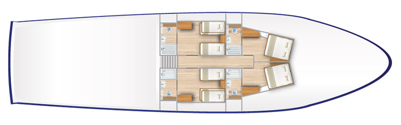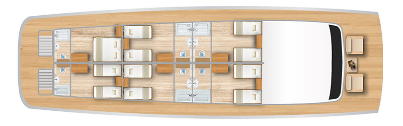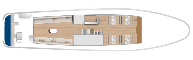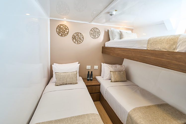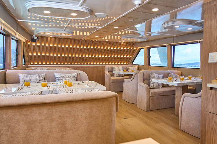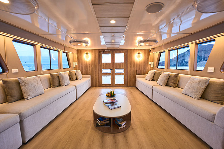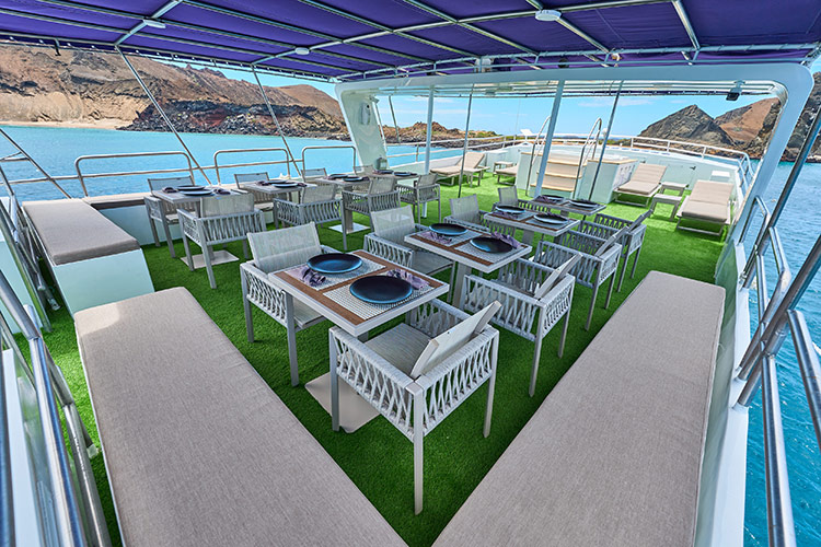 Monserrat Yacht is the only first-class cruise operating with two naturalist guides for a more exclusive expedition. Originally designed for 20, now she accommodates only 16 guests, offering them more space in her social areas. Her itineraries take you to the most beautiful sites in the Enchanted Islands, where you observe Galapagos’ iconic species. Montserrat features triple, double, and single accommodations.